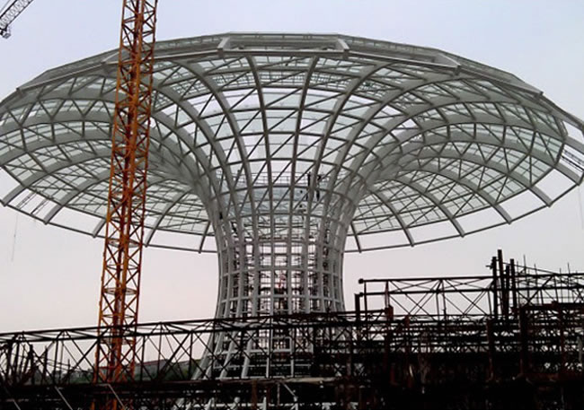 體育中心籃球館球形網(wǎng)架施工工...![]()