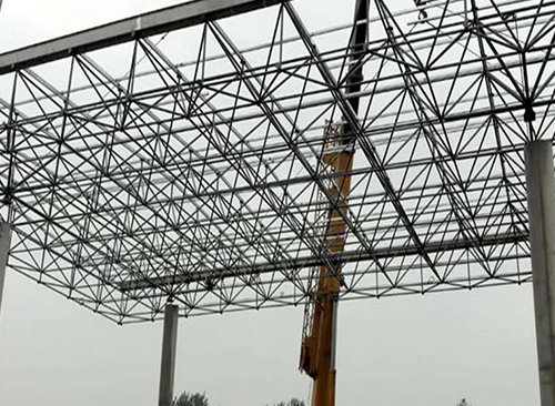 體育中心籃球館球形網(wǎng)架施工工...![]()